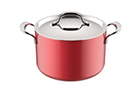 「ロッセラ」の鍋本体は、保温性と耐久性に優れたステンレス鋼に、熱伝導に優れたアルミニウムと赤いセラミック加工を重ねたマルチレイヤー構造。アルミニウムは4mmと厚く、抜群の熱伝導のため熱ムラを作らず料理を美味しく仕上げてくれます。さらに、鍋の外側のセラミック加工は調理時の傷や熱に強く、使った後のお手入れも簡単です。イタリアの情熱を思わせるイタリアンレッドカラーの「ロッセラ」は、“そのままテーブルに出せる美しい鍋”としてお持ちの調理器具の中でもひと際華やかな存在感で、毎日のお料理を上質に彩ります。